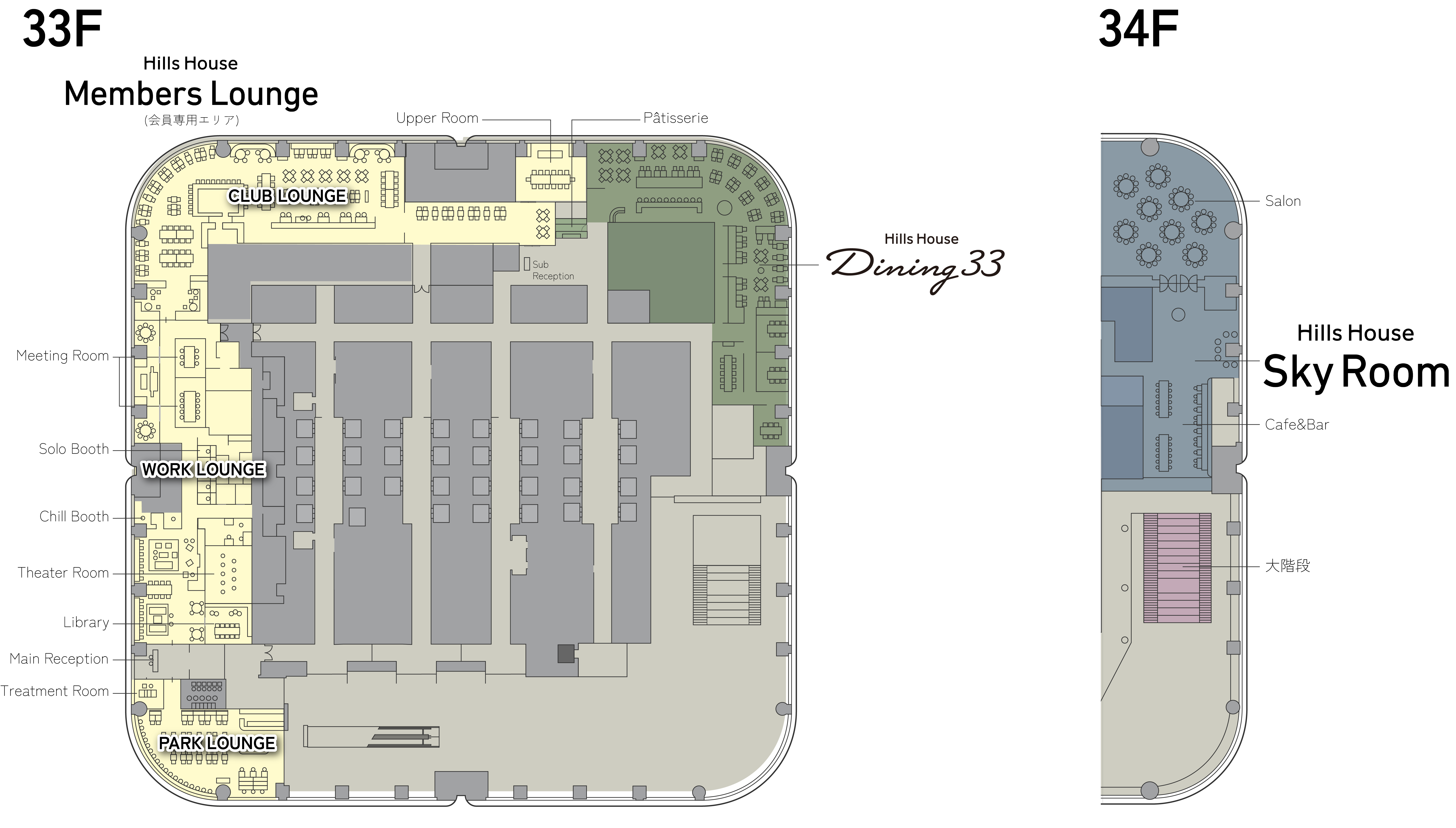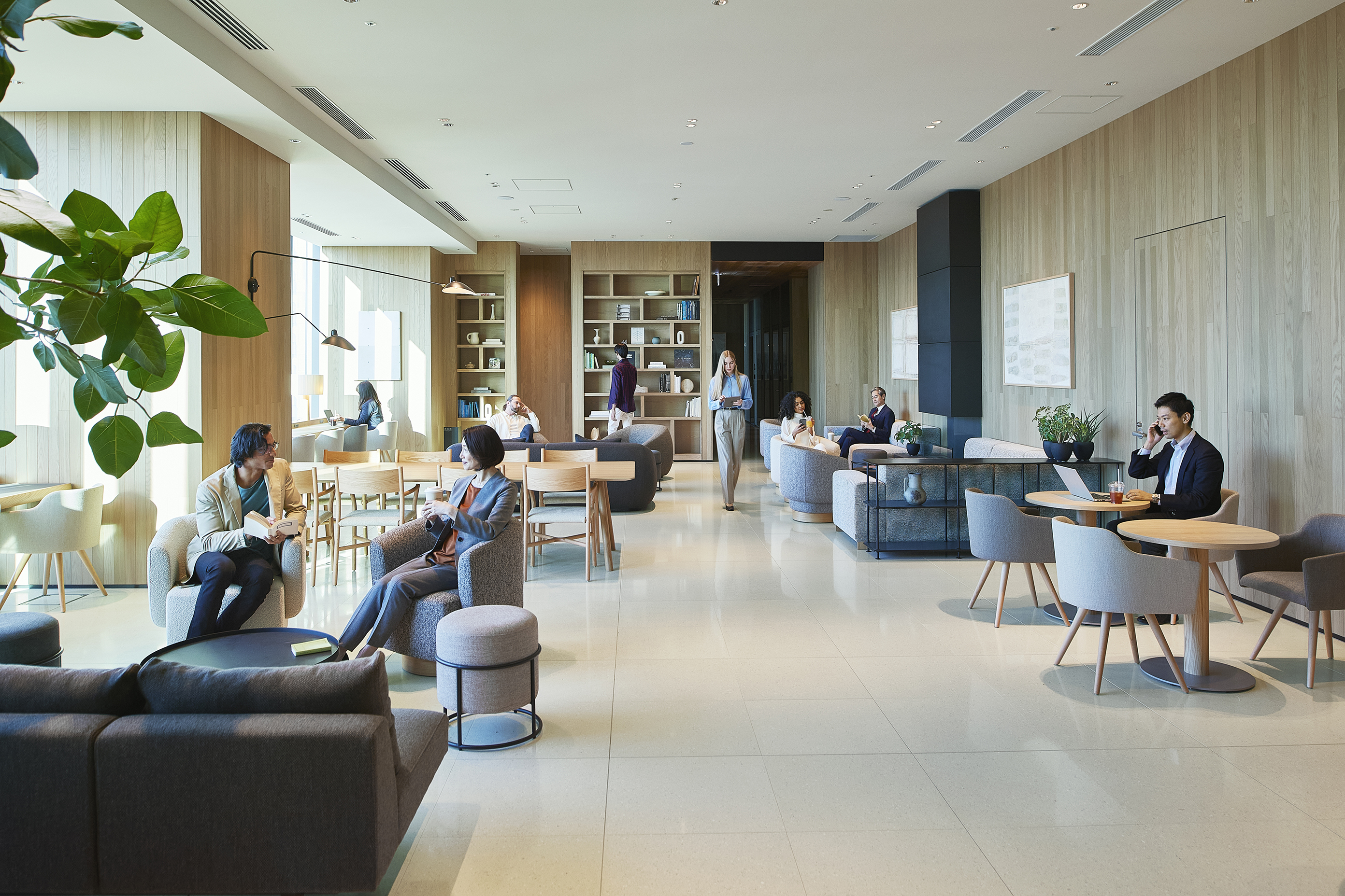 自由に働けるワークプレイスや、ワーカーの健康をサポートするカフェテリア、メンバー同士の交流と学びの場を兼ね備えた会員制エリア。